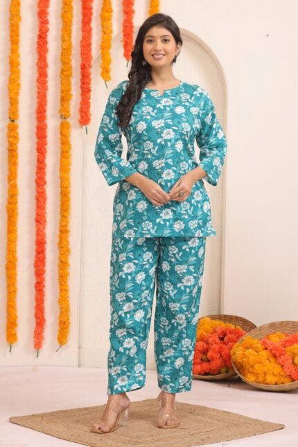 Women Printed Night Suit Set | Cotton Nightwear for Girls & Ladies | Relax Fit
